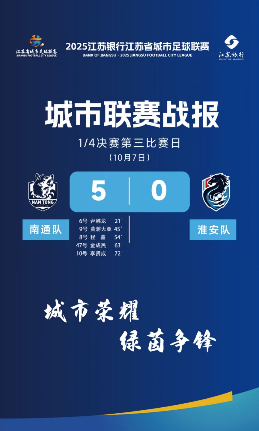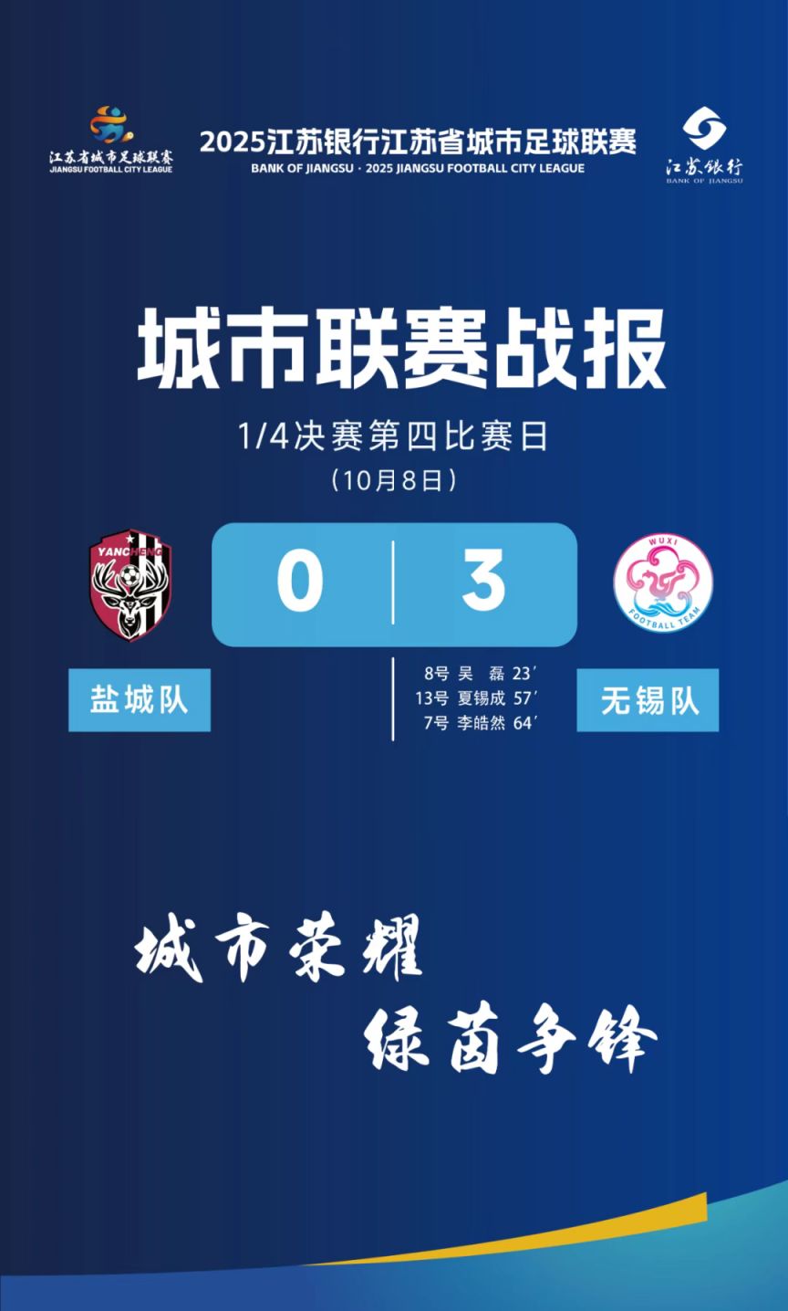 2025年10月8日晚,江苏省城市足球联赛1/4决赛圆满收官。最新比赛比分以及积分榜排名详见正文。