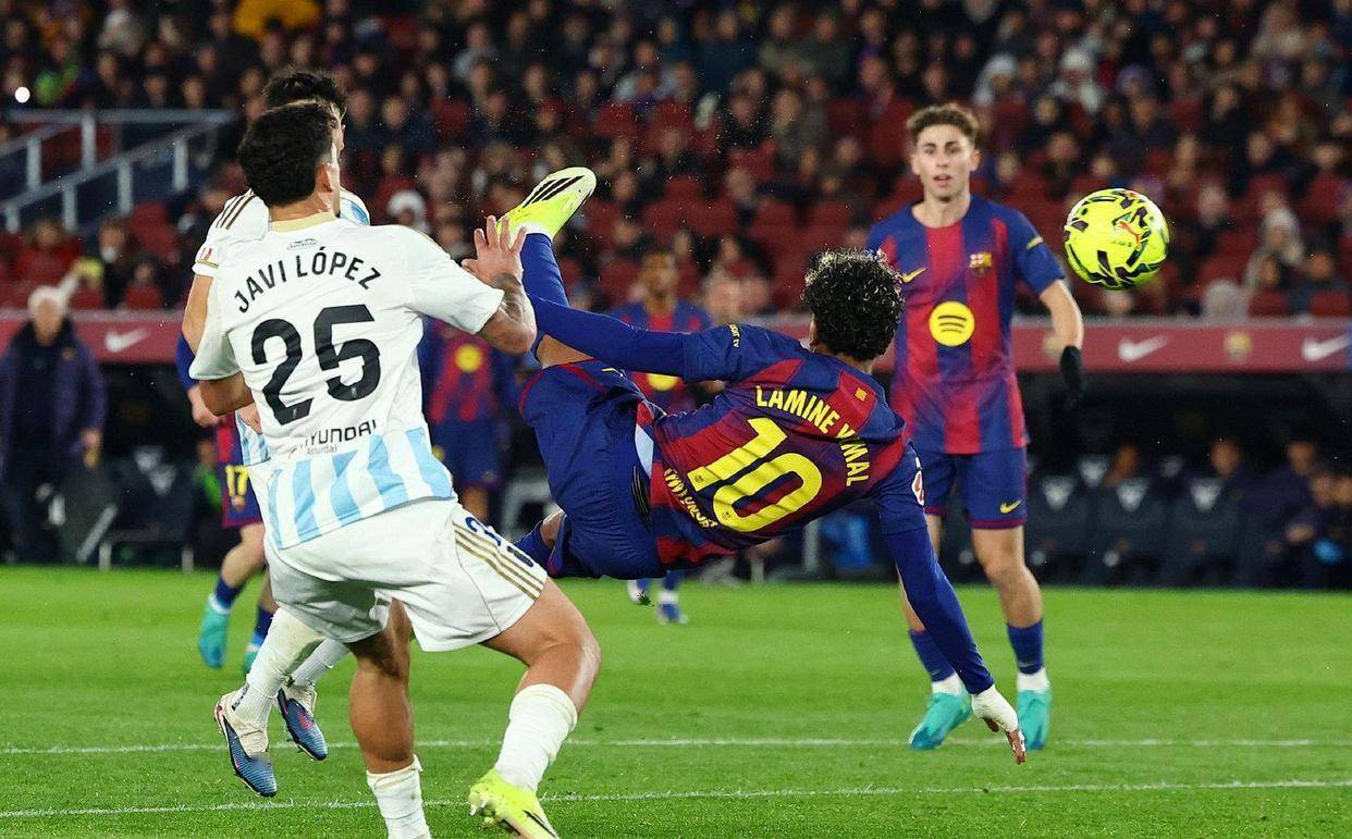 比赛胜负已定,巴萨主教练开始了阵容轮换。 替补登场的小将亚马尔,在禁区接队友传中,以一记不可思议的凌空侧钩破门,将全场比分锁定在3-0。 这个进球堪称艺术品,也为本场大胜画上了一个华丽的句号。