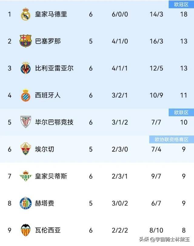 西甲直播,西甲赛程,西甲积分榜,皇马vs巴萨直播,西甲比分预测/为中文用户提供2025赛季西甲联赛全方位资讯:免费高清中文直播入口、赛程表、积分榜更新、皇马与巴萨动态追踪、竞彩推荐与比分预测。西甲联赛第六轮的战火全面重燃,在一周双赛的紧密赛程之下,几支志在欧冠区的球队各自迎来了关键战役。其中,皇家马德里在客场以一场酣畅淋漓的4-1大胜,将联赛连胜纪录扩大到六场,强势领跑积分榜;黄色潜水艇比利亚雷亚尔则在客场2-1力克劲敌塞维利亚,稳固了自己前四的位置;而近期状态挣扎的毕尔巴鄂竞技在主场被联赛副班长赫罗纳1-1逼平,颓势仍在继续。本轮战罢,西甲的争冠集团和欧战区形势变得愈发清晰。