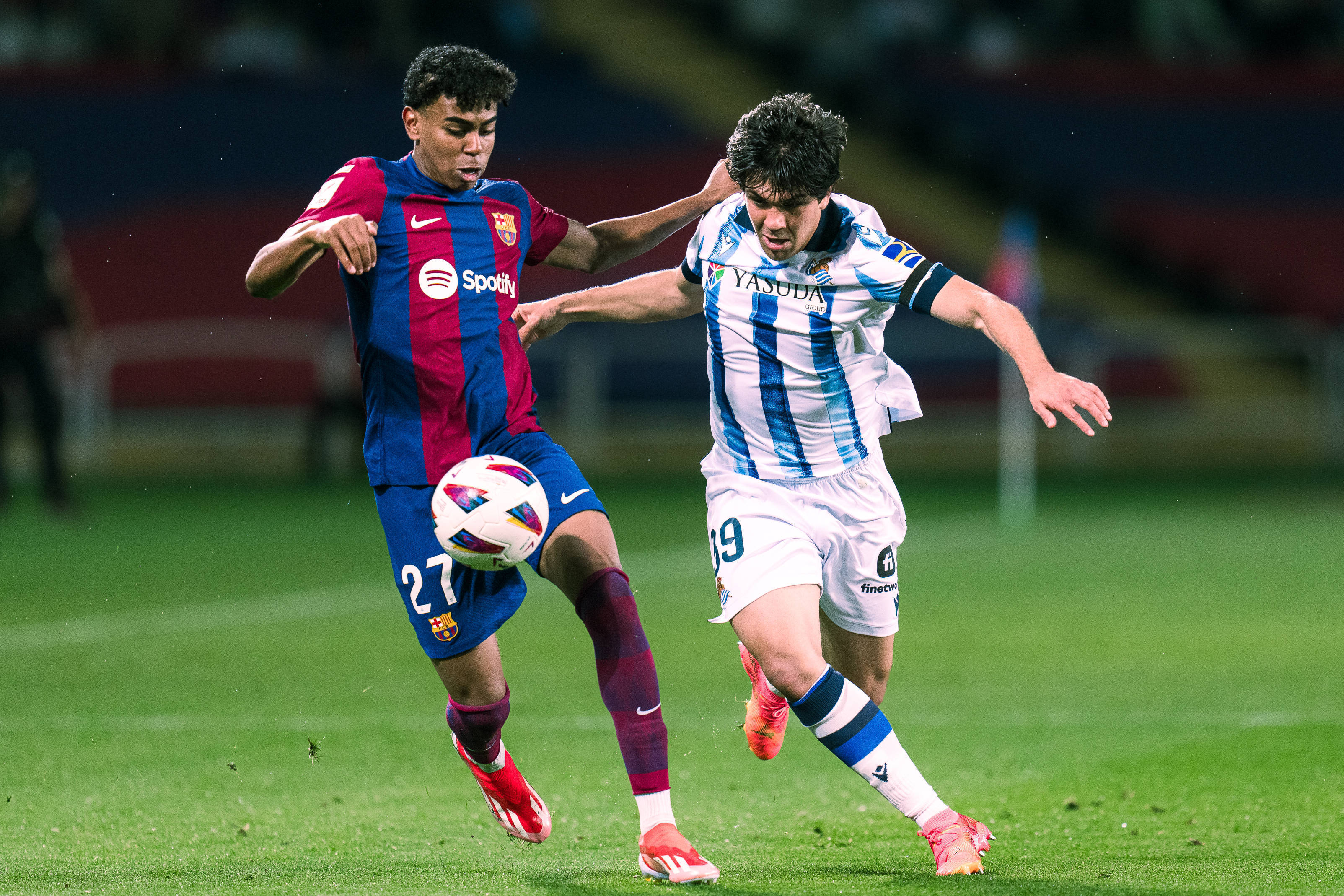 两队近期状态解读巴萨近期状态正盛,近,5,场各项赛事取得,4,胜,1,平,包括欧冠,2,-,1,击败纽卡斯尔、西甲,3,-,0,大胜赫塔费等。球队进攻火力全开,近,10,场场均打入,3.2,球,莱万多夫斯基以,8,球领跑射手榜,亚马尔则以,4,助攻成为边路突破核心。皇家社会近期状态低迷,近,10,场仅取得,2,胜,5,平,3,负。在进攻端表现失衡,近,6,场仅打入,6,球却丢,9,球,不过客场防守韧性尚存,过去,6,个客场仅失,2,球,且奥亚萨瓦尔与久保建英状态火热,近,3,场贡献,4,球,1,助攻,。