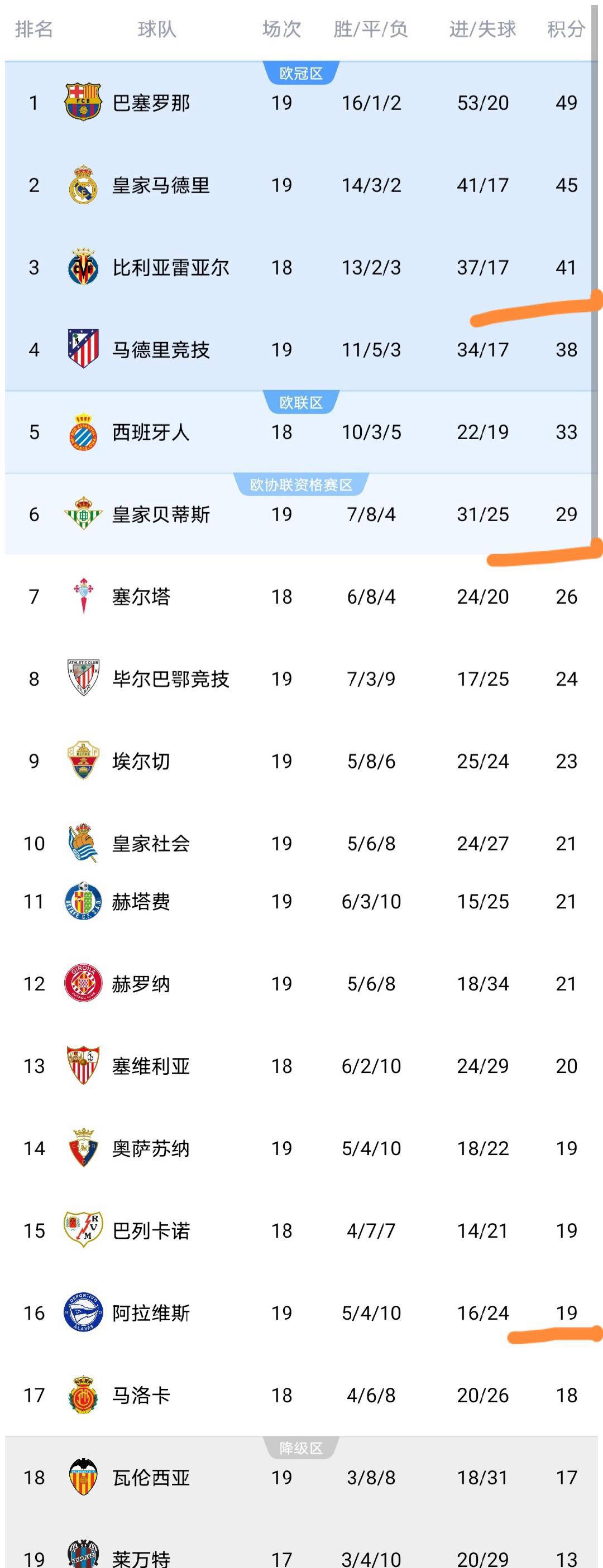 西甲直播,西甲赛程,西甲积分榜,皇马vs巴萨直播,西甲比分预测/为中文用户提供2025赛季西甲联赛全方位资讯:免费高清中文直播入口、赛程表、积分榜更新、皇马与巴萨动态追踪、竞彩推荐与比分预测。昨夜至今晨,西甲联赛第19轮的四场比赛相继结束,让我们详细盘点这轮比赛后最新的积分榜情况及各队表现亮点。本轮中,皇家贝蒂斯客场与皇家奥维耶多以1-1握手言和,比利亚雷亚尔坐镇主场以3-1大胜阿拉维斯,赫罗纳主场凭借一粒进球小胜奥萨苏纳,而瓦伦西亚在主场1-1战平埃尔切。