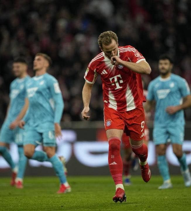 比赛开始后,拜仁全力压迫对手,第3分钟斯坦尼西奇获得单刀良机遗憾未能破门。第20分钟,阿克波古马禁区内犯规导致红牌罚下,拜仁获得点球机会,凯恩冷静主罚得手,帮助球队取得领先。第28分钟,霍芬海姆险些扳平比分,但稍显遗憾。随后,诺伊尔出现失误,让克拉马里奇攻入扳平比分的进球。上半场末段,迪亚斯再次制造点球,凯恩成功主罚梅开二度,并亲自打入进球,拜仁带着3比1的优势进入下半场。