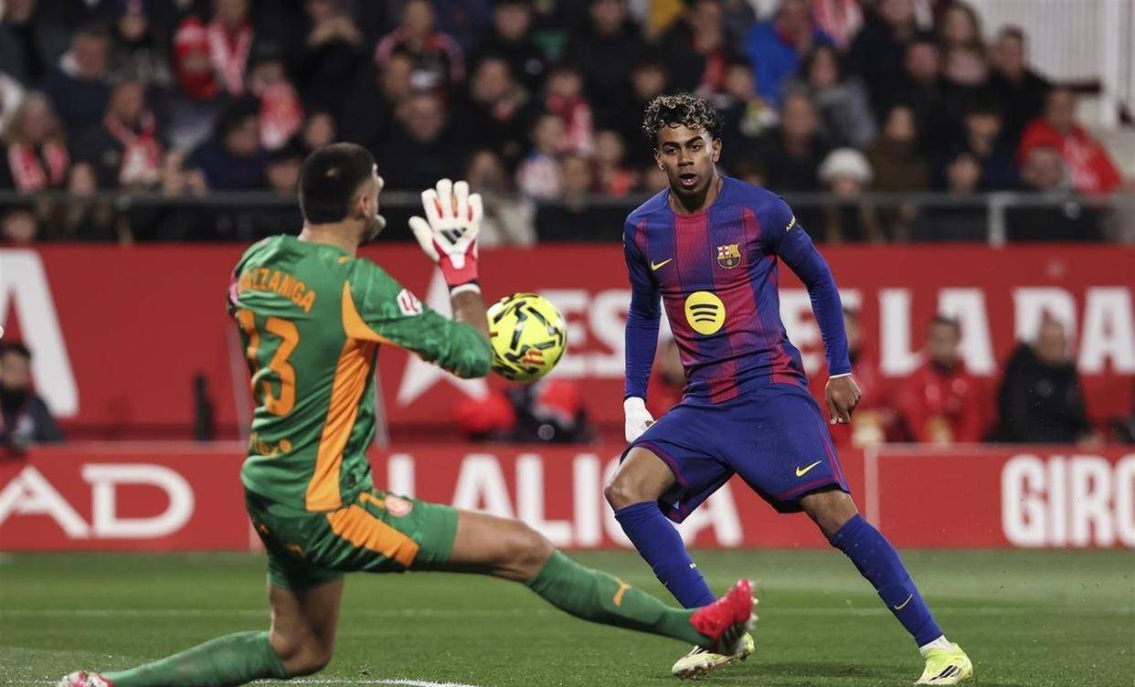 另一边,巴萨在赫罗纳的主场遭遇滑铁卢。 尽管巴萨全场控球率高达70.6%,传球740次,疯狂射门27次,但只有4次射正,打进1球。 赫罗纳控球率仅29.4%,射门13次却有9次射正,高效地攻入2球。 年轻球星亚马尔的表现成为焦点,他罚丢点球并错失单刀。